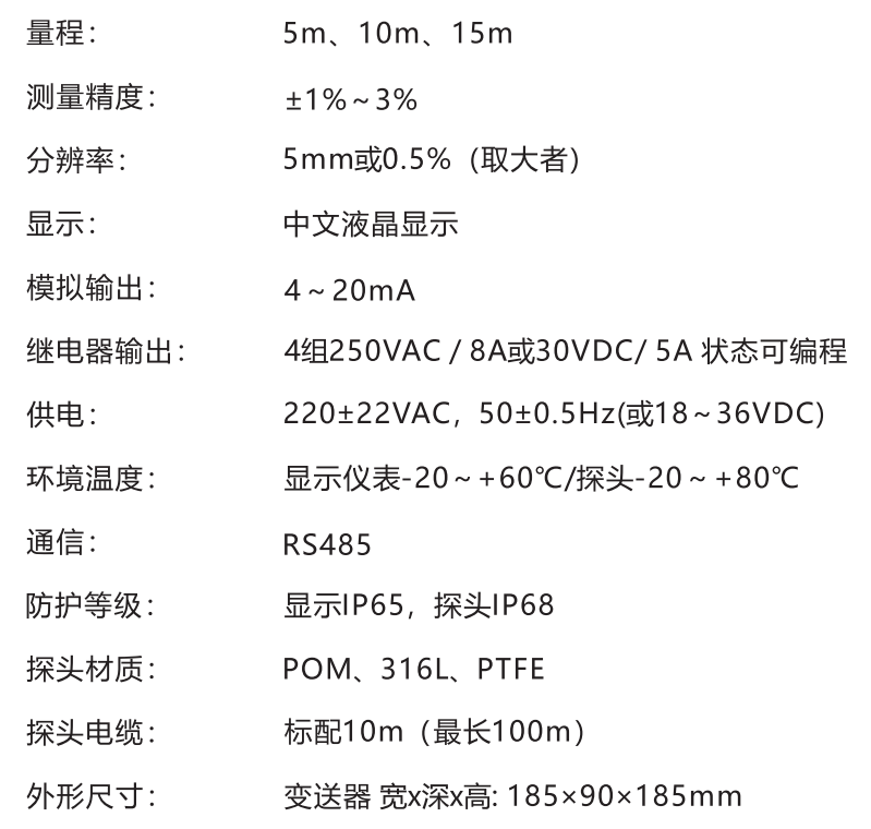5.探頭防護(hù)等級(jí)IP68可用于惡劣環(huán)境