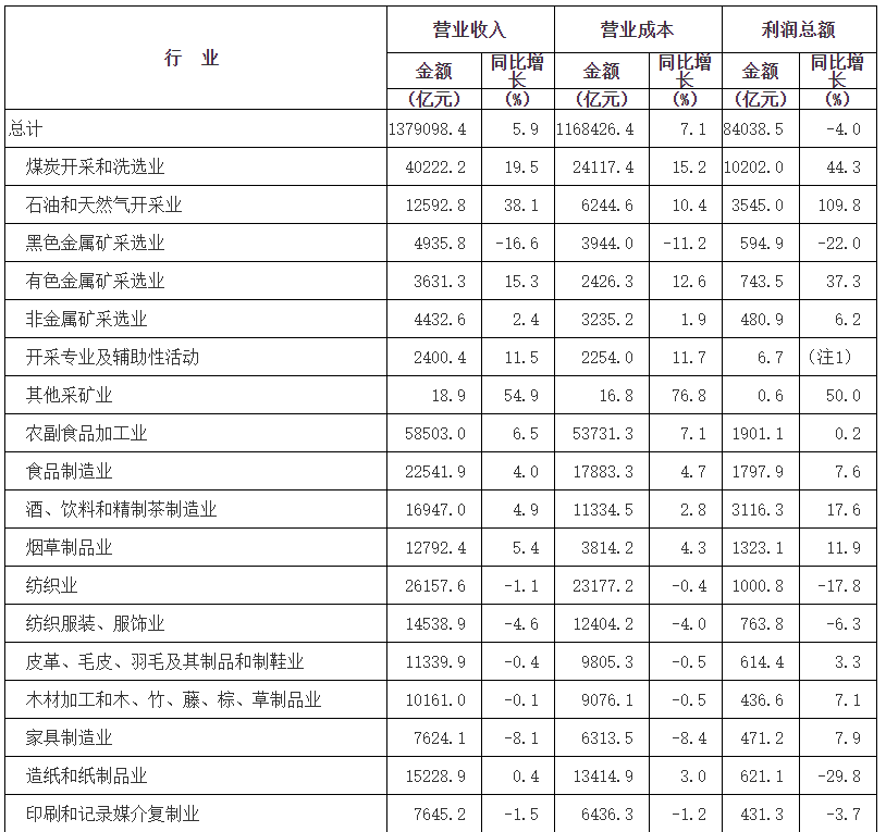 1.石油和天然氣開采業(yè)利潤總額比上年增長1.10倍,電力、熱力生產(chǎn)和供應(yīng)業(yè)增長86.3%,煤炭開采和洗選業(yè)增長44.3%,電氣機(jī)械和器材制造業(yè)增長31.2%,專用設(shè)備制造業(yè)增長3.4%,汽車制造業(yè)增長0.6%。
