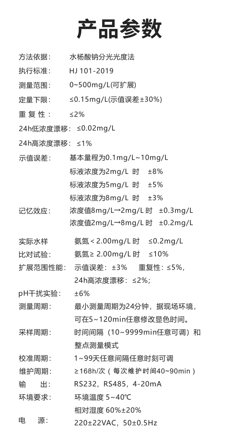 產(chǎn)品簡(jiǎn)介: ·型號(hào):CN1002A(柜式)、CN1002B (精巧型) √ 采用分光光度法,測(cè)量更精準(zhǔn); √ 10寸智能觸控大屏,人機(jī)界面友好; √ 自動(dòng)標(biāo)準(zhǔn)樣品核查,減免人工作業(yè); √ 自動(dòng)連續(xù)監(jiān)測(cè),實(shí)時(shí)數(shù)據(jù)遠(yuǎn)傳; √ 異常報(bào)警和斷電不會(huì)丟失數(shù)據(jù); √ 超大數(shù)據(jù)存儲(chǔ),保存歷史5年以上。